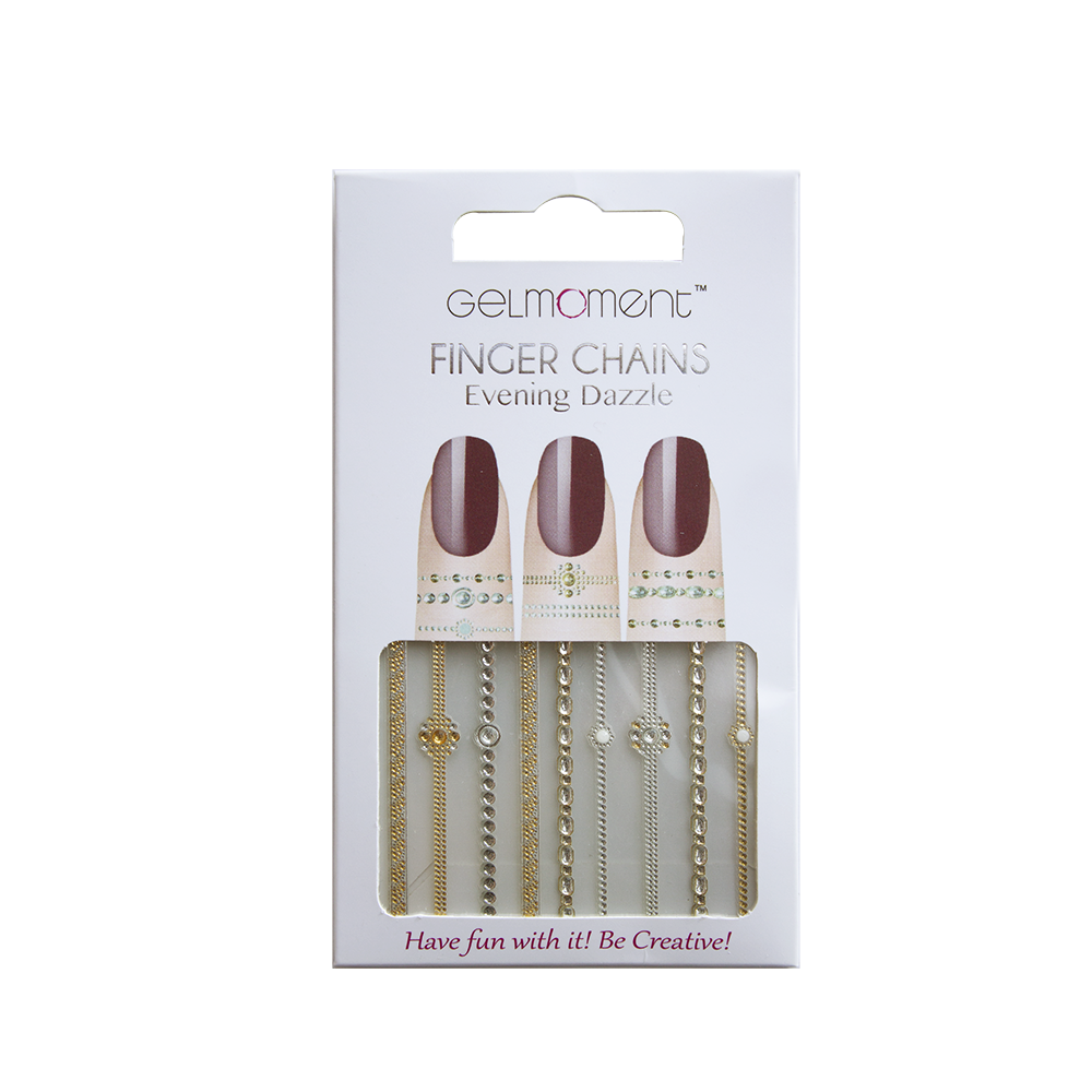 Why end the fun at your nails? Extend your creativity onto your fingers with the help of GelMoment Finger Chains. These self-adhesive "rings" draw the eye toward your beautiful GelMoment manicure. The cute stick-on finger decals can also be used to create a toe ring! Simply apply to the skin around your fingers or toes and enjoy! No glue required.